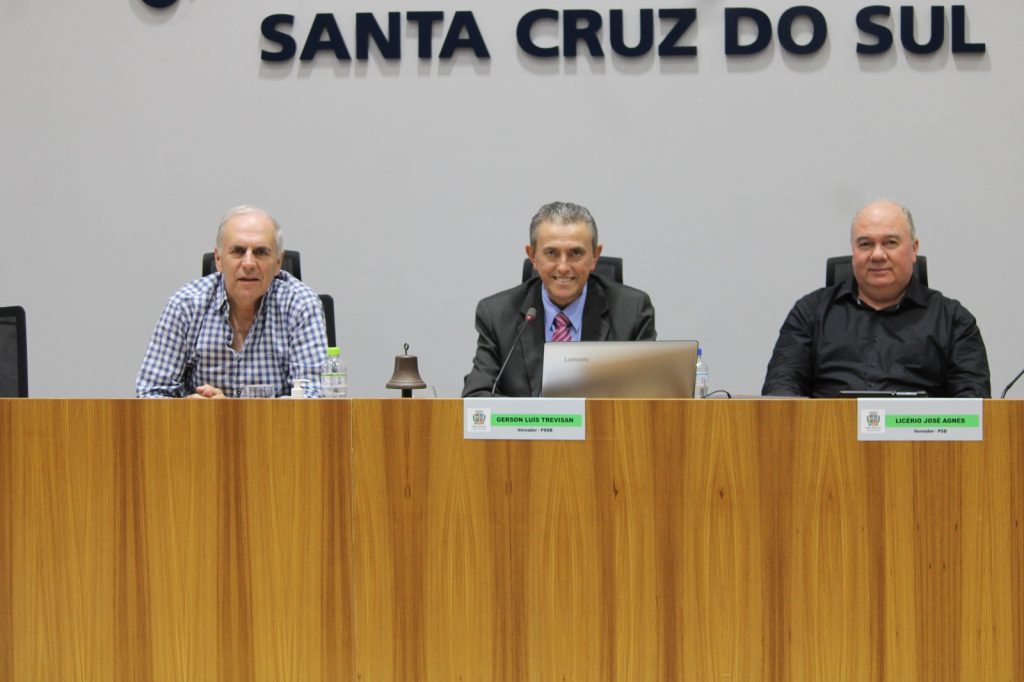 Santa Cruz do Sul – Oito projetos foram aprovados na sessão ordinária, realizada nesta segunda-feira, dia 11, no Plenário Vereador Nilton Garibaldi. A sessão foi conduzida pelo vice-presidente Gerson Trevisan (PSDB), em virtude da licença da presidente Bruna Molz. Ainda assumiram cadeiras os vereadores Marcelo Machado (Republicanos, na vaga de Bruna Molz; e Zafira Goldemberg (PSD) na vaga de Hilário Juarez da Silva.