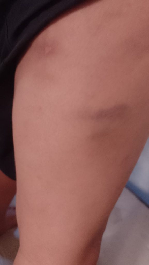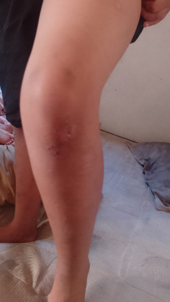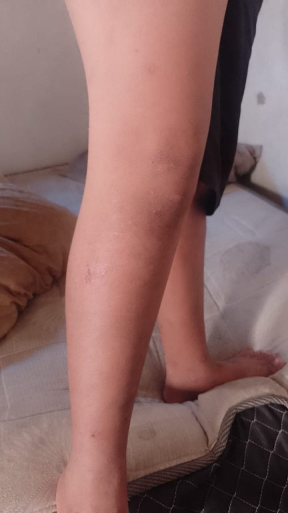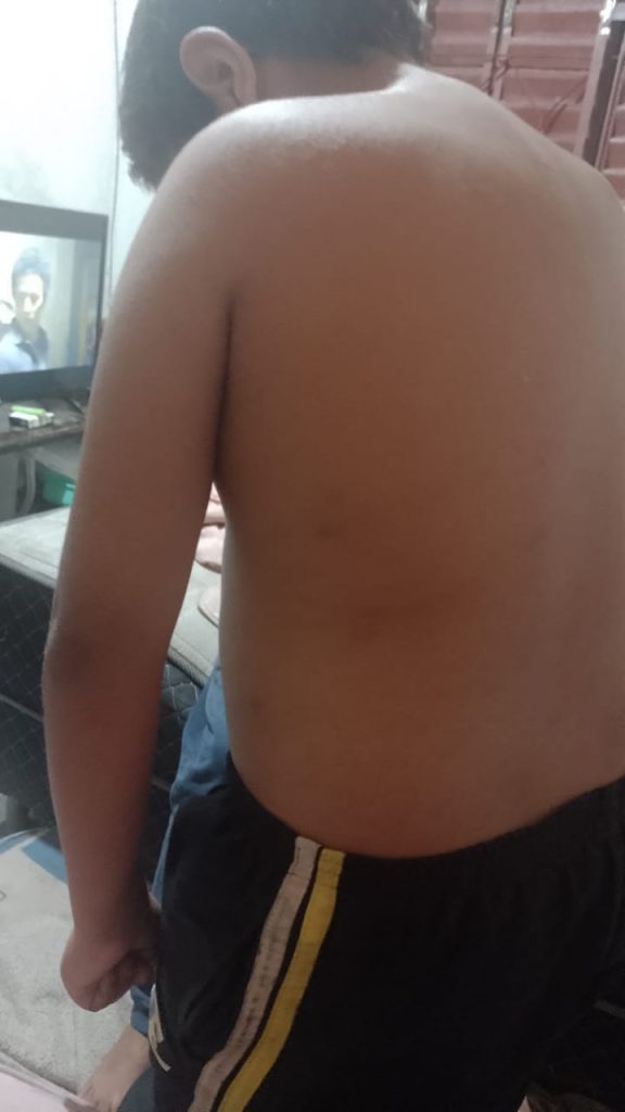 “Como é possível ver nas fotos e conforme relato da mãe, foram só escoriações, graças a Deus nada de grave, mas ele poderia ter morrido”, afirmou.