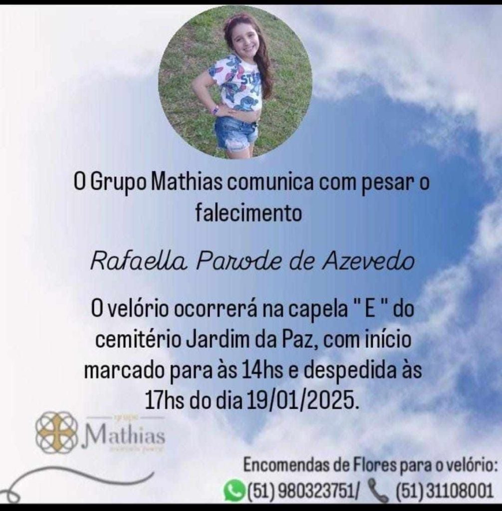 “Eu sou a mãe da Rafaella. Não tinha um salva-vidas capacitado. Ninguém salvou minha filha. Foram os visitantes que estavam lá que nos ajudaram a levá-la ao posto da ambulância, onde não tinha NINGUÉM. Uma moça nos levou ao hospital, mas minha filha não resistiu.”