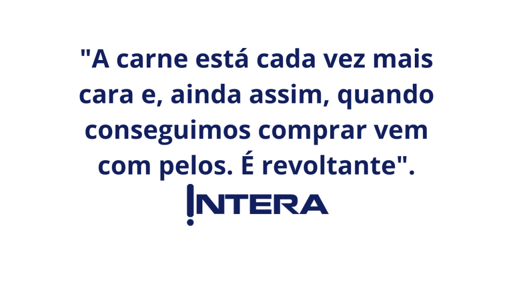“Comprei carne hoje em uma rede de mercado e fui cortando e fritando. Quando cheguei numa parte, percebi pelos de rato, muitos. Joguei toda a panela de carne fora, estragou o almoço. Um nojo imenso desse mercado. A carne está cada vez mais cara e, ainda assim, quando conseguimos comprar vem com pelos. É revoltante.”