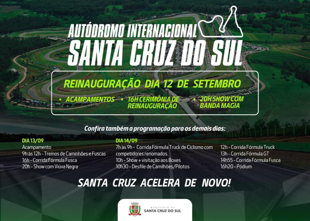 Santa Cruz do Sul (RS) – Um dos principais símbolos do automobilismo gaúcho retorna com tudo: o Autódromo Internacional de Santa Cruz do Sul será oficialmente reinaugurado de 12 e 14 de setembro, marcado por uma etapa da Fórmula Truck. O evento celebra a conclusão das obras de revitalização e promete consolidar o autódromo como um dos mais atrativos do país.