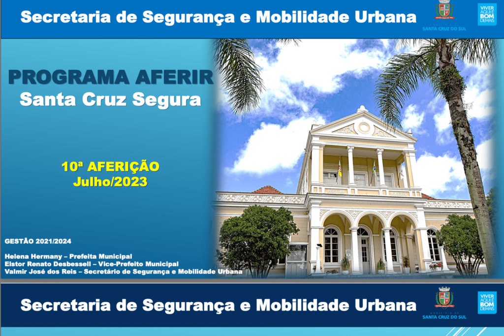 A Secretaria de Segurança e Mobilidade Urbana (Sesmob) de Santa Cruz do Sul realizou, na manhã desta quinta-feira (10/08), mais uma edição do Programa Aferir. Durante o encontro, ocorrido no Auditório da Procuradoria-Geral do Município, foram avaliados os dados e resultados da secretaria durante o mês de julho.