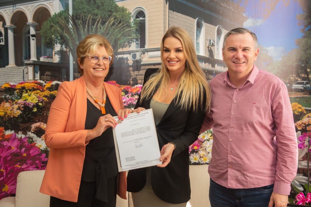 A prefeita de Santa Cruz do Sul, Helena Hermany, recebeu com alegria a notícia de que a Câmara de Vereadores destinou repasse de R$ 800 mil para a Secretaria Municipal da Saúde. Participaram da entrega do ofício no Palacinho, na manhã desta terça-feira, 27, o vice-prefeito e secretário municipal da área, Elstor Desbessell, e a presidente da Câmara, Bruna Molz.